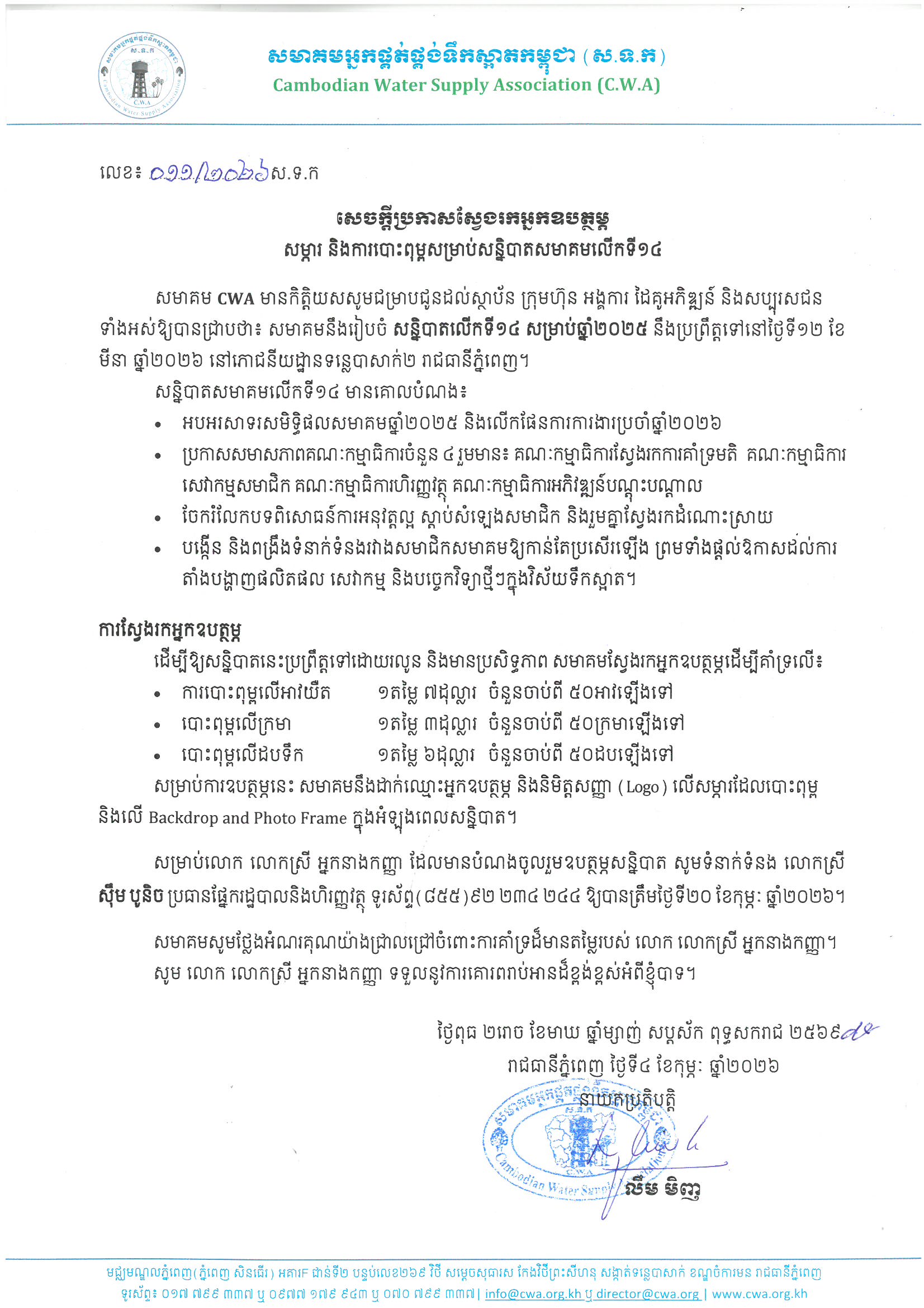 សេចក្តីប្រកាសស្វែងរកអ្នកឧបត្ថម្ភ