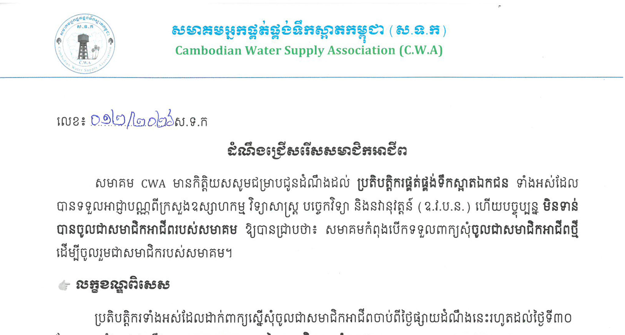 ច្បាប់ស្តីពីការគ្រប់គ្រងទឹកស្អាតចេញថ្មី20230311